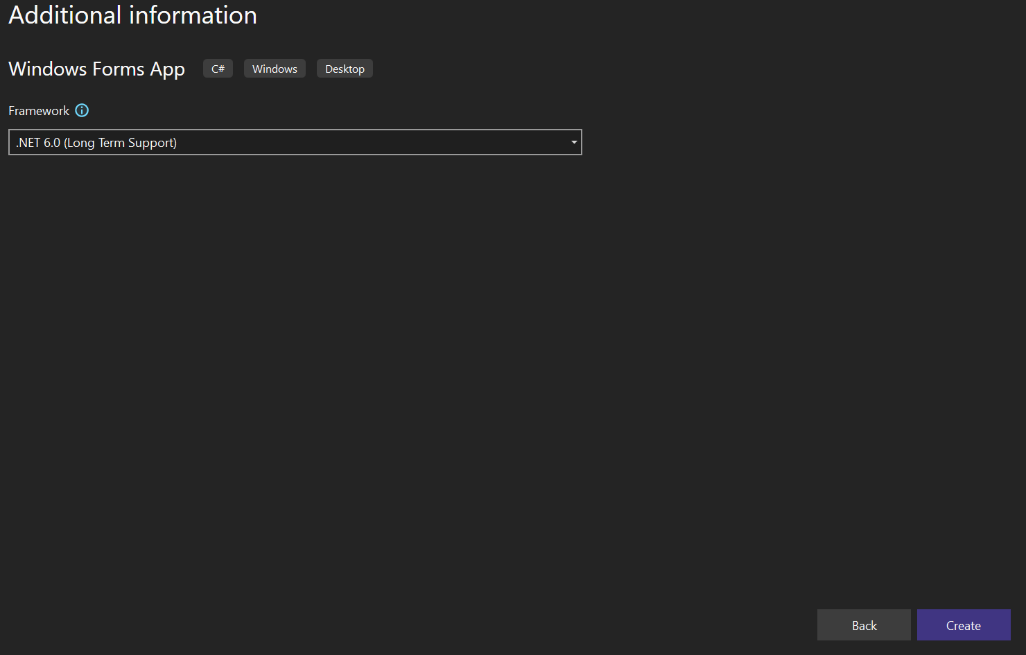 4. Pilih opsi .NET 6.0 dan pilih opsi create